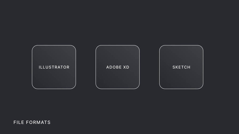 - File Formats: Illustrator, Adobe XD, Sketch, SVG